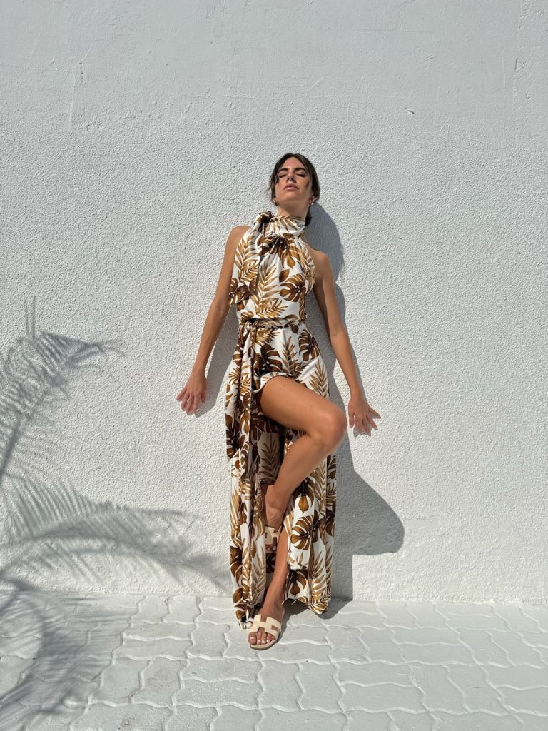 The Alison maxi dress is your ultimate sophistication look with a hint of a beach style. Neck-scarf matching with the attached belt adjustable to your waist line. Stunning printed design elevating your look for any summer occasion.