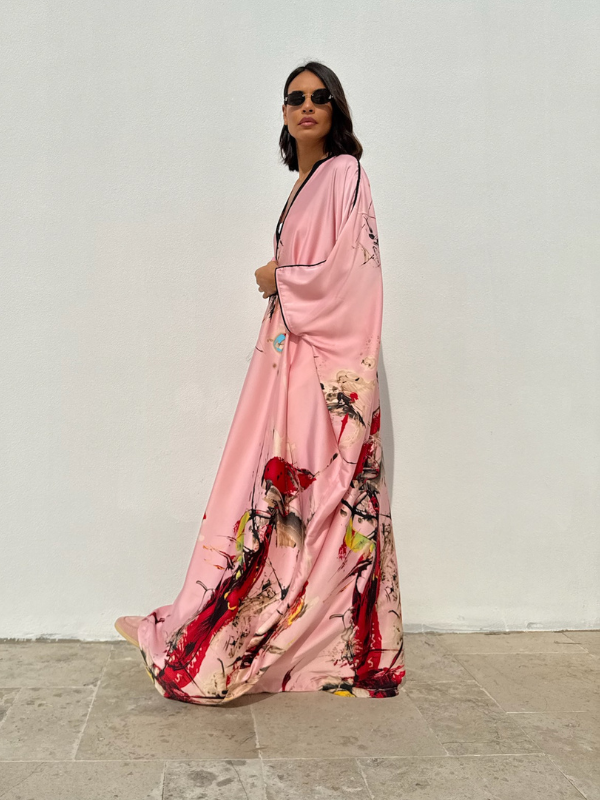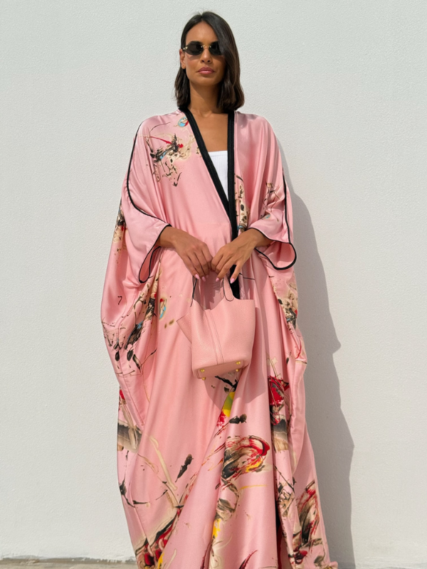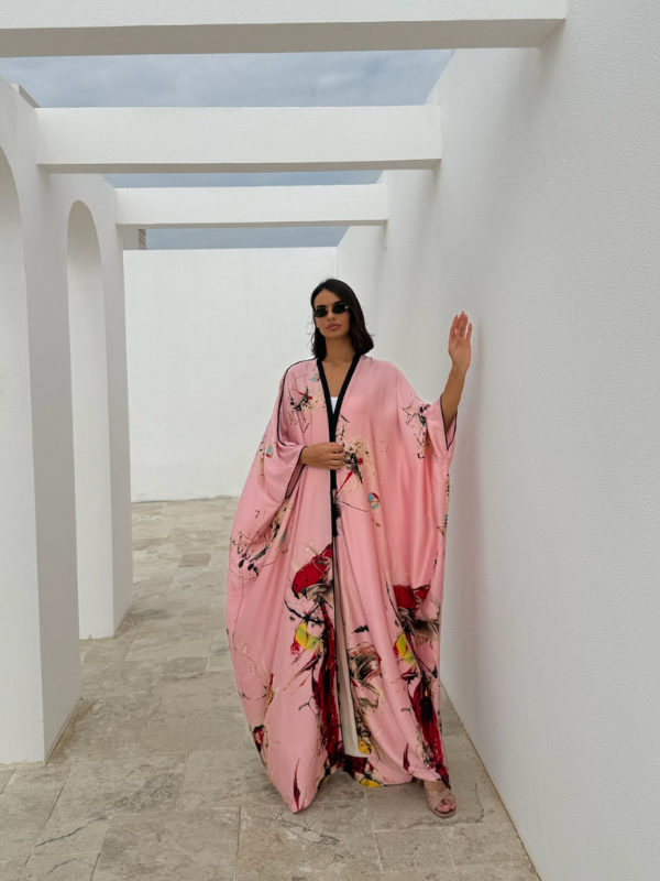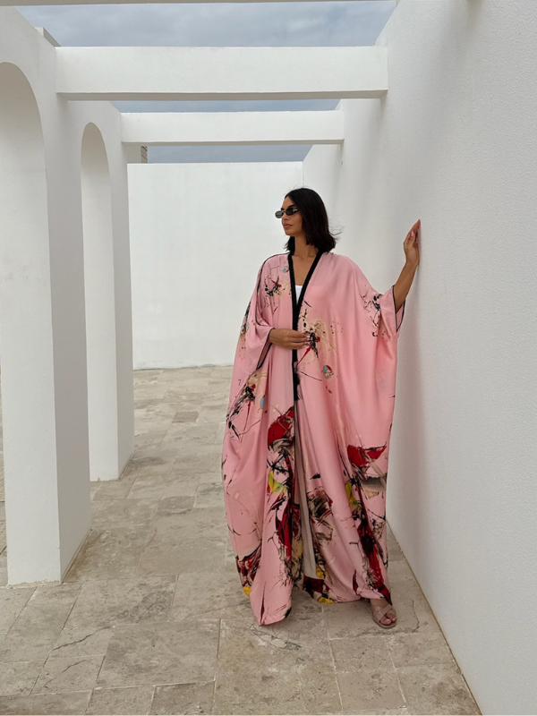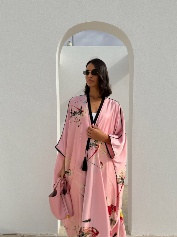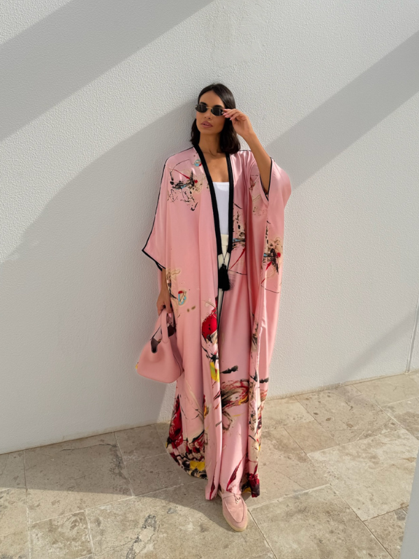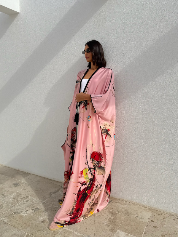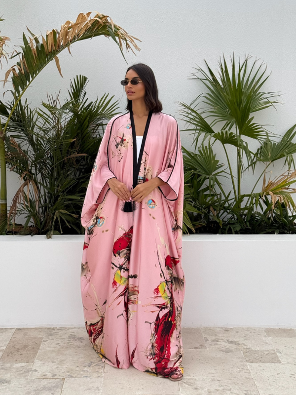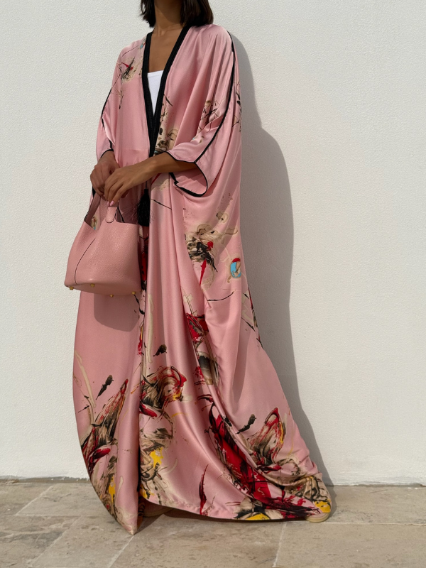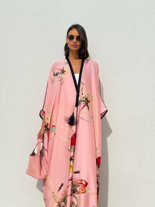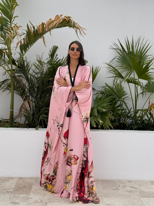 The Flair Silk Tunic will elevate your modest-wear collection with this beautiful printed silk. Crafted from a silk fabric, cut for an exceptional fluid movement and tasseled with handmade trims on the lapel all the way down along the front.