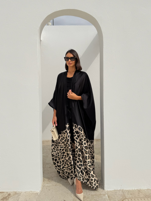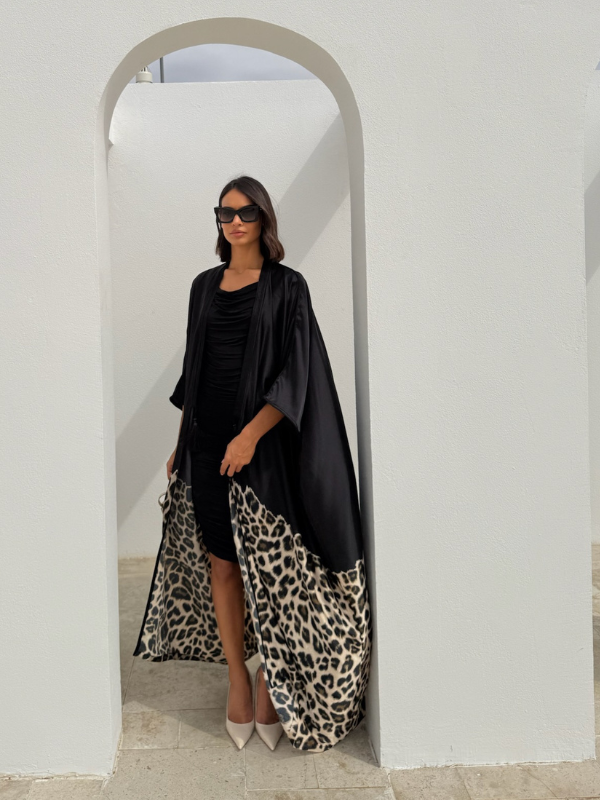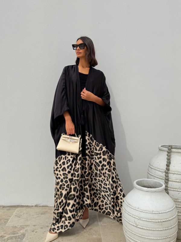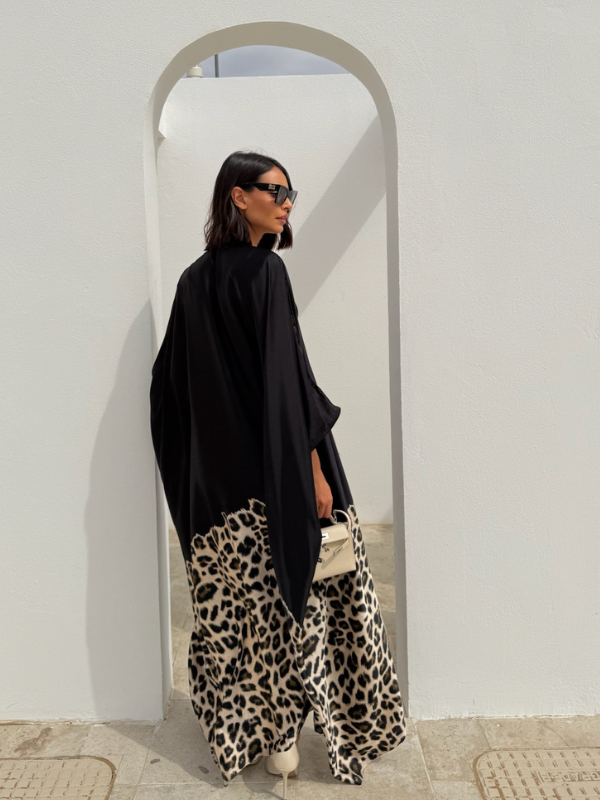 The Mimi Silk Tunic will elevate your modest-wear collection with this beautiful leopard printed silk. Crafted from a silk fabric, cut for an exceptional fluid movement and tasseled with handmade trims on the lapel all the way down along the front.