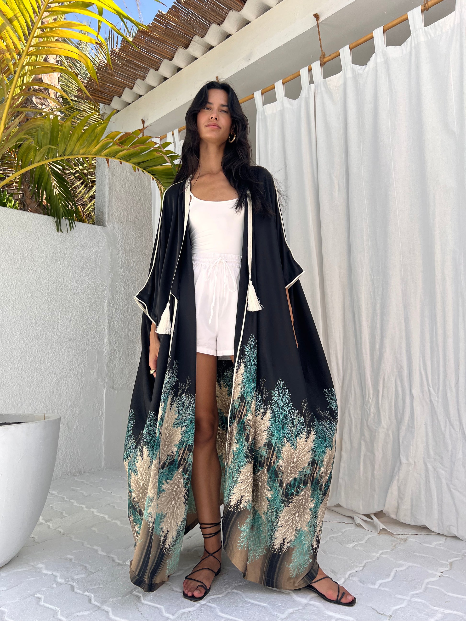 Our Best-seller: The Silk Tunic will elevate your modest-wear collection. Crafted from a silk fabric, cut for an exceptional fluid movement and tasseled with handmade trims on the lapel all the way down along the front.
