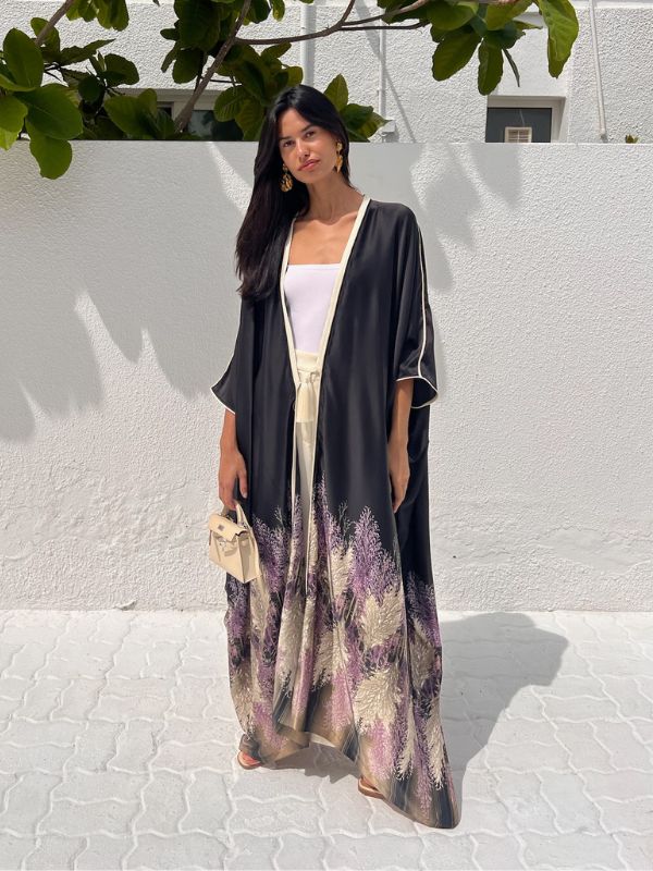 Our Best-seller: The Silk Tunic will elevate your modest-wear collection. Crafted from a silk fabric, cut for an exceptional fluid movement and tasseled with handmade trims on the lapel all the way down along the front.